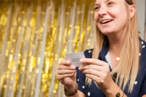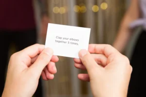 Ready, steady… showdown! In 20 Second Showdown, players split into two teams and face off in a rapid-fire battle of ridiculous challenges. Flip the giant timer, listen to the referee read out a task, and scramble to complete it before your 20 seconds of sand run out. From hugging a plant to counting like a caveman or staging an impromptu wedding, every challenge is designed to get everyone moving, laughing, and cheering.