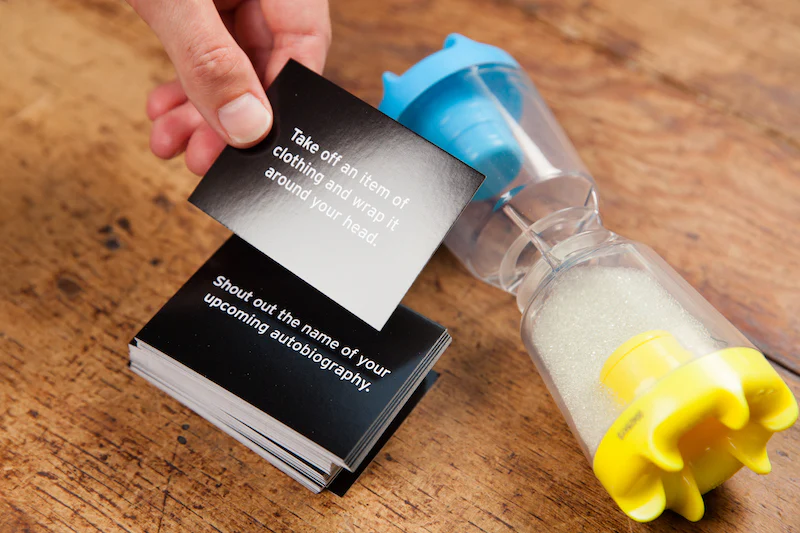 Teams alternate challenges, flipping the timer back and forth as fast as they succeed. The pressure builds as the sand drains away, and the first team to run out of time loses the round. Easy to learn and wildly unpredictable, 20 Second Showdown is perfect for large groups, families, and parties where anything can happen, and probably will.