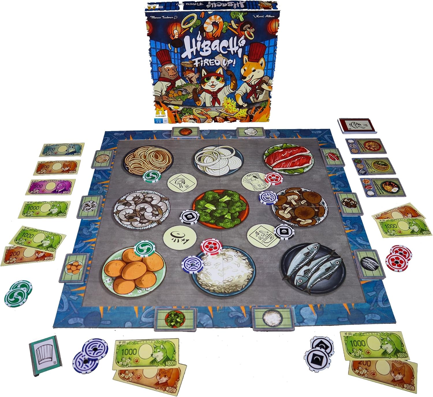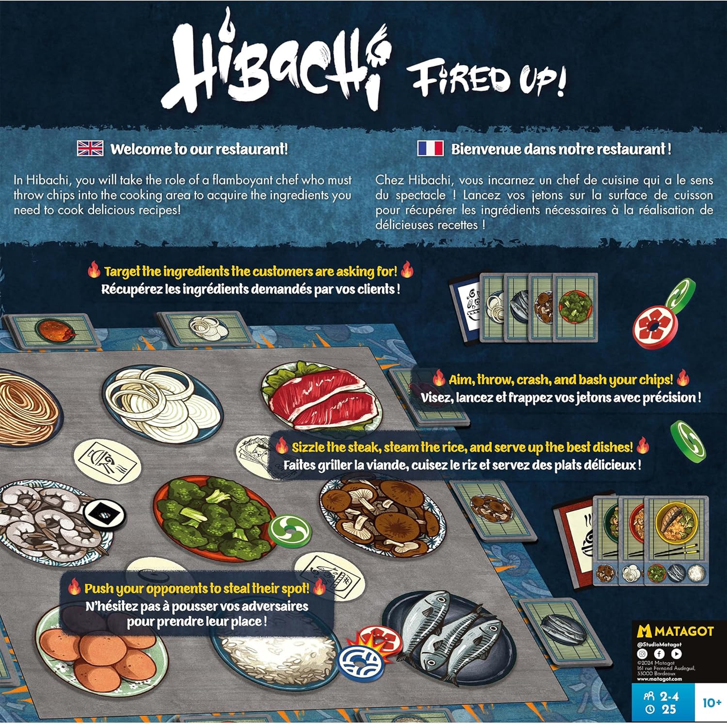 Hibachi: Fired Up! is a fast, energetic dexterity game where players become flamboyant chefs, flicking and tossing chips to claim ingredients and cook sizzling dishes. Aim carefully, disrupt your rivals, and race to be the first chef to complete three recipes and impress the customers.