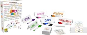 Just One is a co-operative party game in which you all play together to get the best score! Your goal each round is to get one player — the active player — to guess a mystery word based on the clues given by teammates. Can you achieve a perfect score by guessing all the mystery words?