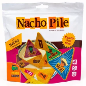 Timing is everything, because chips sitting in front of you aren’t safe until your next turn, when they finally make it onto your plate. Special chips add extra spice with unexpected effects that keep everyone on edge. The game ends when the bag runs nearly empty, and victory goes to the player who’s piled up the most of the winning chip or the biggest plate overall. Easy to learn, loud, and laugh-out-loud fun, Nacho Pile is perfect for parties, families, and anyone who loves a little risk with their game night.