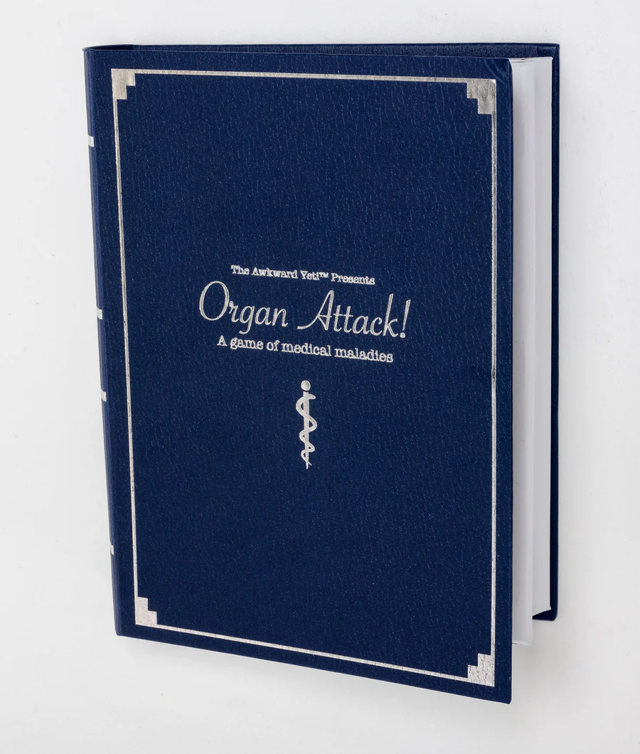 OrganATTACK! is a fast, funny card game where players use diseases and afflictions to remove each other’s organs, defending their own with immunity cards. No medical knowledge required, just outwit, outlive, and be the last player with at least one organ remaining.