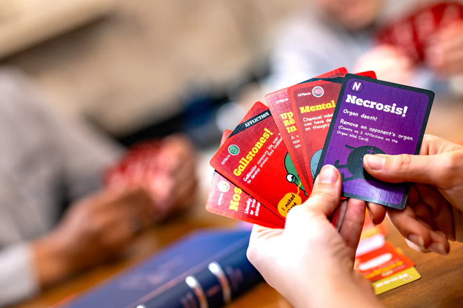 Players unleash afflictions like Gallstones, Thyroiditis, and even the infamous “Day-Old Burrito” on their opponents’ organs, while using immunity boosts and defensive tactics to keep their own bodies functioning. You don’t need any medical knowledge, just a willingness to embrace both medically accurate terminology and immature potty humour. Every turn is an opportunity to sabotage a rival or narrowly dodge disaster.
