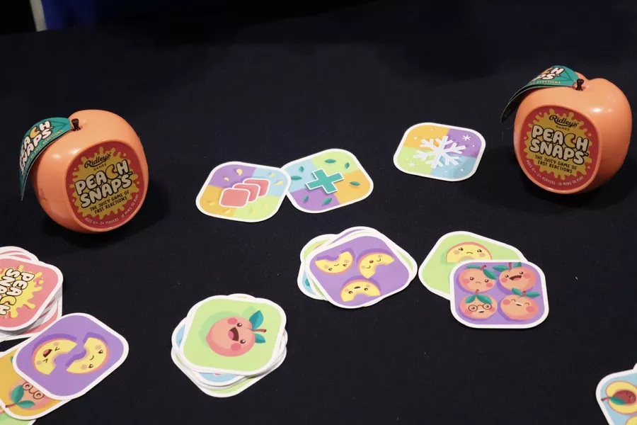 Peach Snaps is a fast-paced, fruity card game where players race to match cards by color, symbol, or number. Be quick to snap your cards onto the center pile, use action cards to shake up the game, and be the first to discard all your cards by shouting “Peach Snaps!”