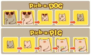 At the start of each round, cards are laid out in a grid and players are given one card as their starting point. When the signal is given, everyone grabs matching cards at the same time, stacking them in hand as the matching conditions constantly change. When a player believes no more matches are possible, they shout “Stop!”—but timing is everything. Stopping too early or making a mistake can cost you the entire stack. Easy to learn, frantic to play, and endlessly replayable, Pick-A-Dog is a lively family game that rewards sharp observation and lightning-fast decisions.
