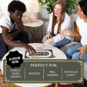 Move your team along the track with each correct answer, outshout your opponents, and turn your “useless” knowledge into points. Perfect for small groups, big parties, and anyone who loves quick-thinking wordplay.