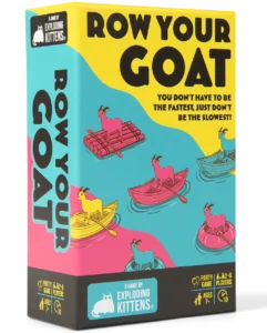 The first player to get down to one card shouts “ROW YOUR GOAT!”, plays their final card, and slaps a Lifesaver to win. Easy to learn, language-free, and wildly energetic, Row Your Goat is perfect for parties, families, and anyone who loves loud, laugh-out-loud game nights.