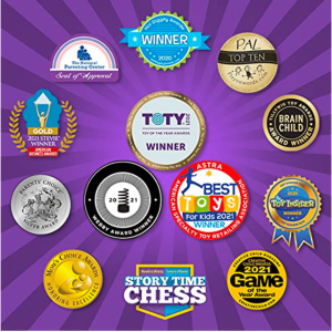 Story Time Chess has won over 19 prestigious awards including the 2021 Toy of The Year People’s Choice Winner, 2021 Webby’s Family & Kids Winner, & 2021 ASTRA Best Game For Kids Winner. I