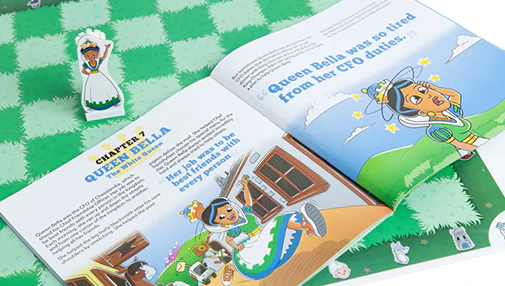 Story Time Chess is a multi-award-winning board game that teaches chess to young children using silly stories, vibrant illustrations, custom chess pieces, a unique chess board, and an engaging card game. The stories and supporting materials communicate the rules of chess to children ages 3 and up in a way that makes learning chess simple and fun. Best of all, no chess experience is required for parents or children to learn.