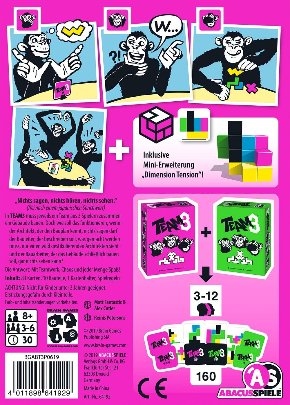 TEAM3 PINK combines strategy, dexterity, and humor in a cooperative environment, perfect for parties, family game nights, or just a lively challenge for friends. Success relies on your ability to work as a seamless team, making every completed structure a triumph of collaboration and skill.